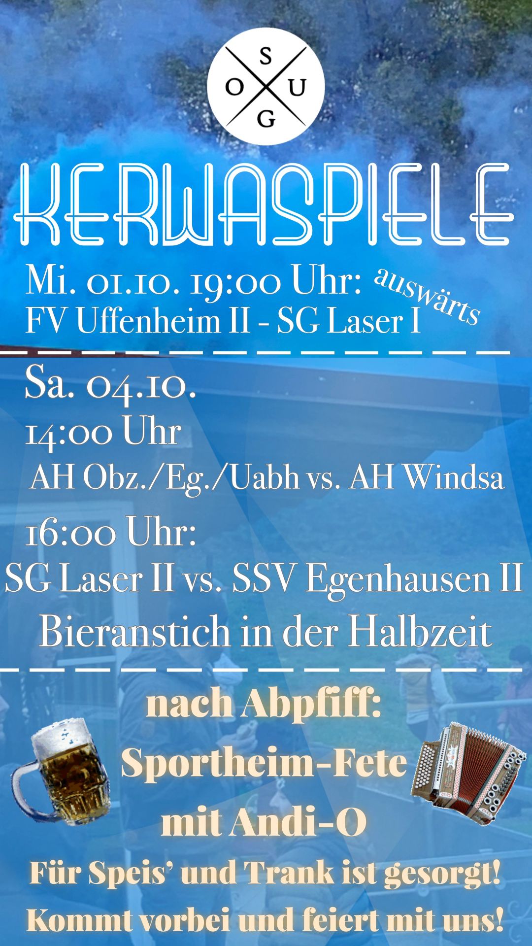 Bieranstich folgt in der Halbzeit und nach Abpfiff wird im Sportheim mit Andi-O gefeiert!